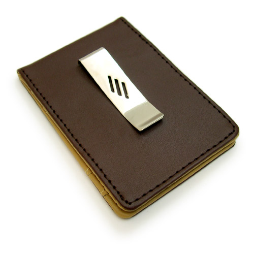 Med clips på baksiden. For kort og sedler