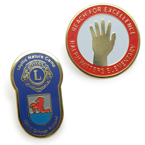 Pin messing med etset emaljert logo