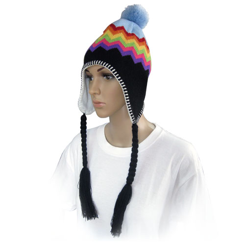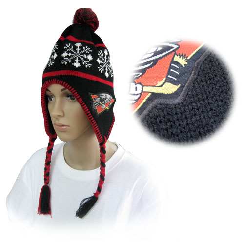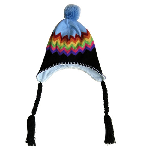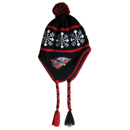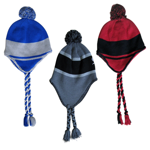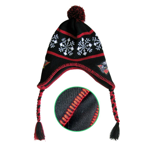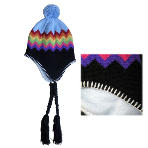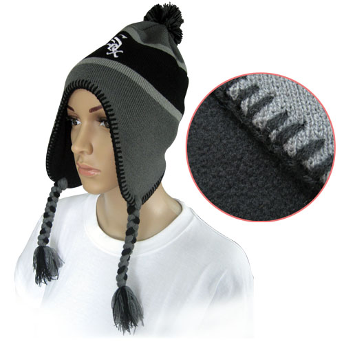 Pom lue akryl og fleece med vevet logo